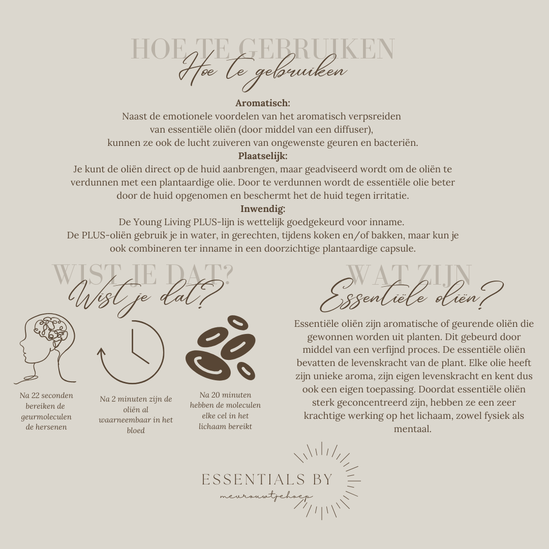 Bij de aankoop van deze starterkit ga je akkoord met een gratis persoonlijk account op Loyalty Rewards via Young Living. Je kunt je hier ten alle tijde voor afmelden. Na een jaar niet bestellen wordt dit account inactief. Let op: deze bestelling komt in twee pakketjes, want de starterkit wordt rechstreeks geleverd door Young Living en het welkomstpakketje door Essentials by Mevrouwtjehoep. Het kan dus zo zijn dat je deze twee pakketten niet op dezelfde dag ontvangt.